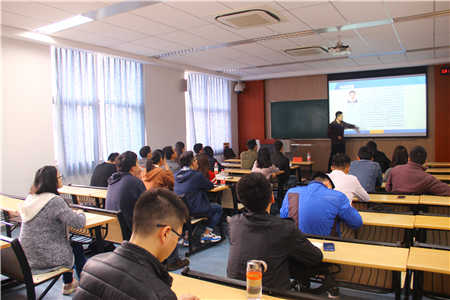 唐老师从个人科研背景、科技文献检索、科技论文写作、科研经历与创新等方面做了交流。在电气工程排名德国第一的亚琛工业大学获得博士学位的他,分享了自己的留学经历及一些感触,德国人不仅具有传统印象中的专注、守时等优秀品质,而且在做研究时十分注重硬件设备的投入,科研人员具有很强的动手能力。之后,从自己的科研经验出发,指出同学们在做研究的初期,可以通过Google、Bing等搜索引擎,或者IEEE Explore、Elsevier等数据库进行科技文检索,也可以查阅一些研究机构或者大学的技术报告,如PSECR、NREL等获取最新资料。进行科技文写作时,多读、精读相关领域的论文,积累专业词汇,注重词汇应用的多样性,如果有机会,可以与以英文为母语的研究人员进行合作,提高英文水平。唐老师说道,研究生生活其实是十分短暂的,时间紧迫,最好尽早确定研究方向,树立发表高水平文章的理想,抓住机会参加国际学术会议,参与实际工程项目,充分发挥主动性、独立性和探索精神。同时,与导师、师兄师姐的交流也很重要。