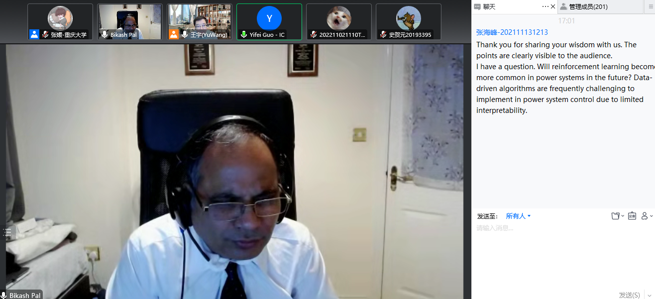 2022年11月28日下午,IEEE会士、帝国理工学院Bikash Pal教授做客成渝地区双城经济圈智慧能源大讲坛第十六期暨智慧能源云讲堂第三十二期,以“Optimal Voltage Ride-Through of IBR-Dominated Power Systems”为主题开讲。本期讲坛由猫都论坛