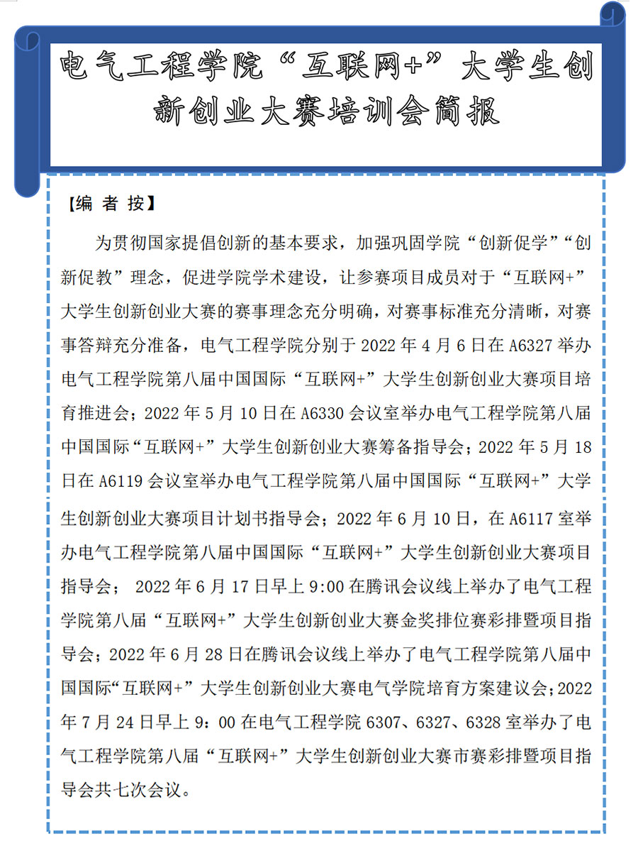 电气学子成学成才路上的重要性。学生参与“互联网+”大学生创新创业大赛,可以帮助自身更好地激扬创新动能、释放创业潜力;在将来的职业发展中对客观事物拥有更好的理解力,能更好地融入团队和理解团队。