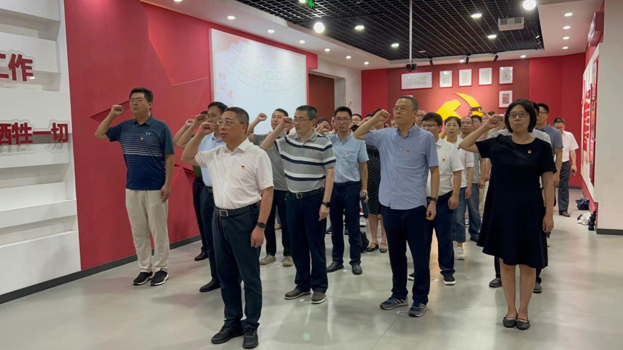 在学院党委书记胡建林带领下,全体党员同志面向党旗重温入党誓词,重忆入党初心。