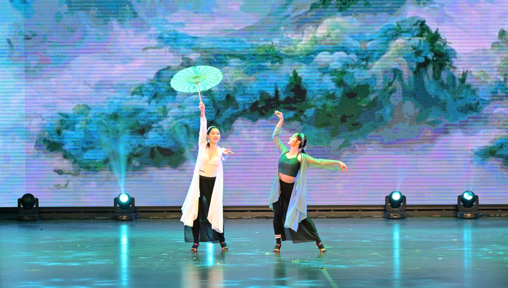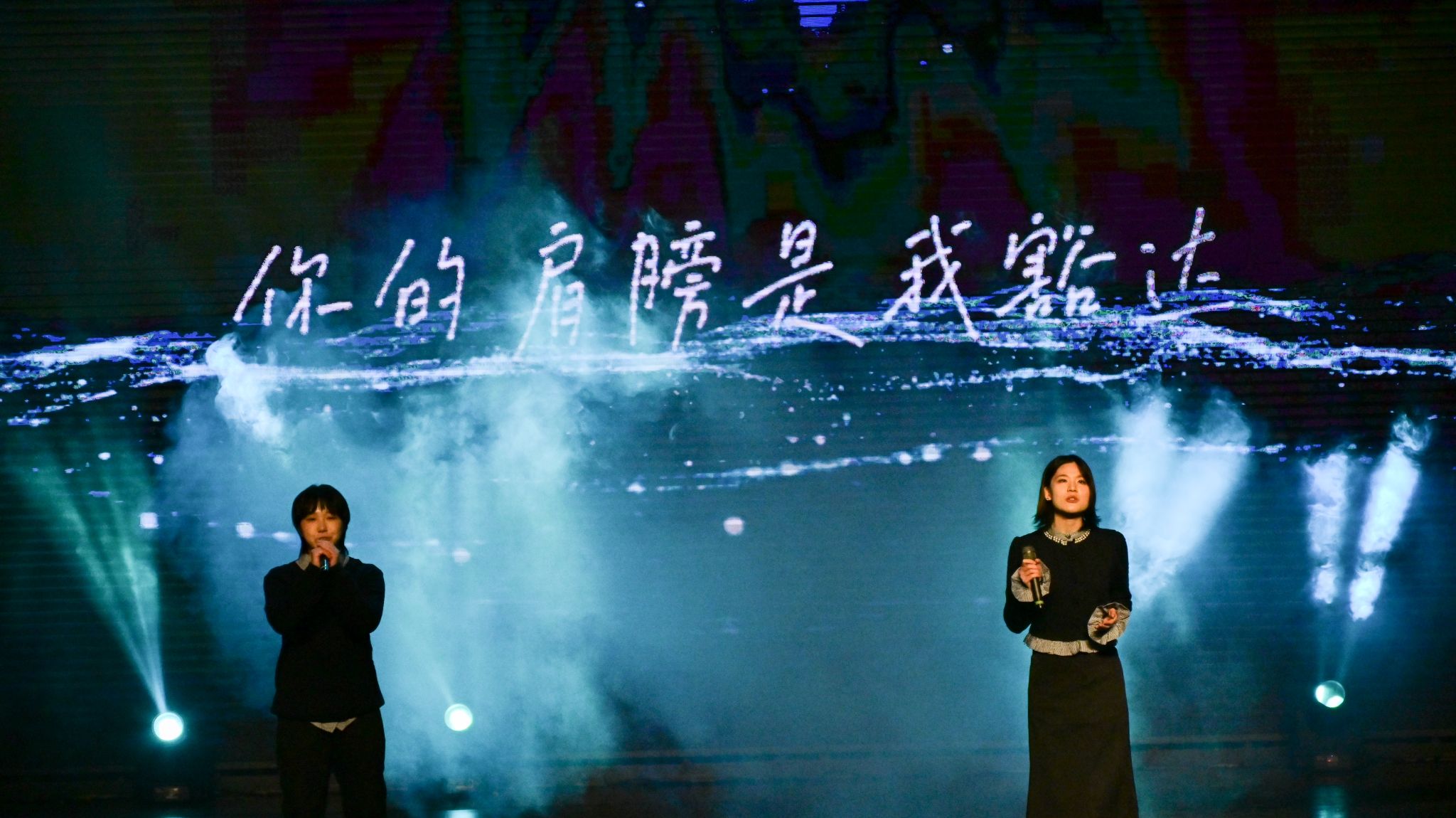 联欢会第二个篇章“扬帆起航·赴新程”表达出电气师生踏上新征程的决心与勇气。相声《天文学》带来幽默风趣的表演,展现出对知识和智慧的独特理解。一首《稻香》带来一曲深情而动人的旋律,激起全场观众对过去的回忆以及怀念。舞蹈《探窗》通过优美的舞姿,演绎出爱与时光的美丽故事。教师们的诗朗诵《我的祖国》用深情的词句表达对祖国的热爱与敬意,唤起观众心中的家国情怀。
