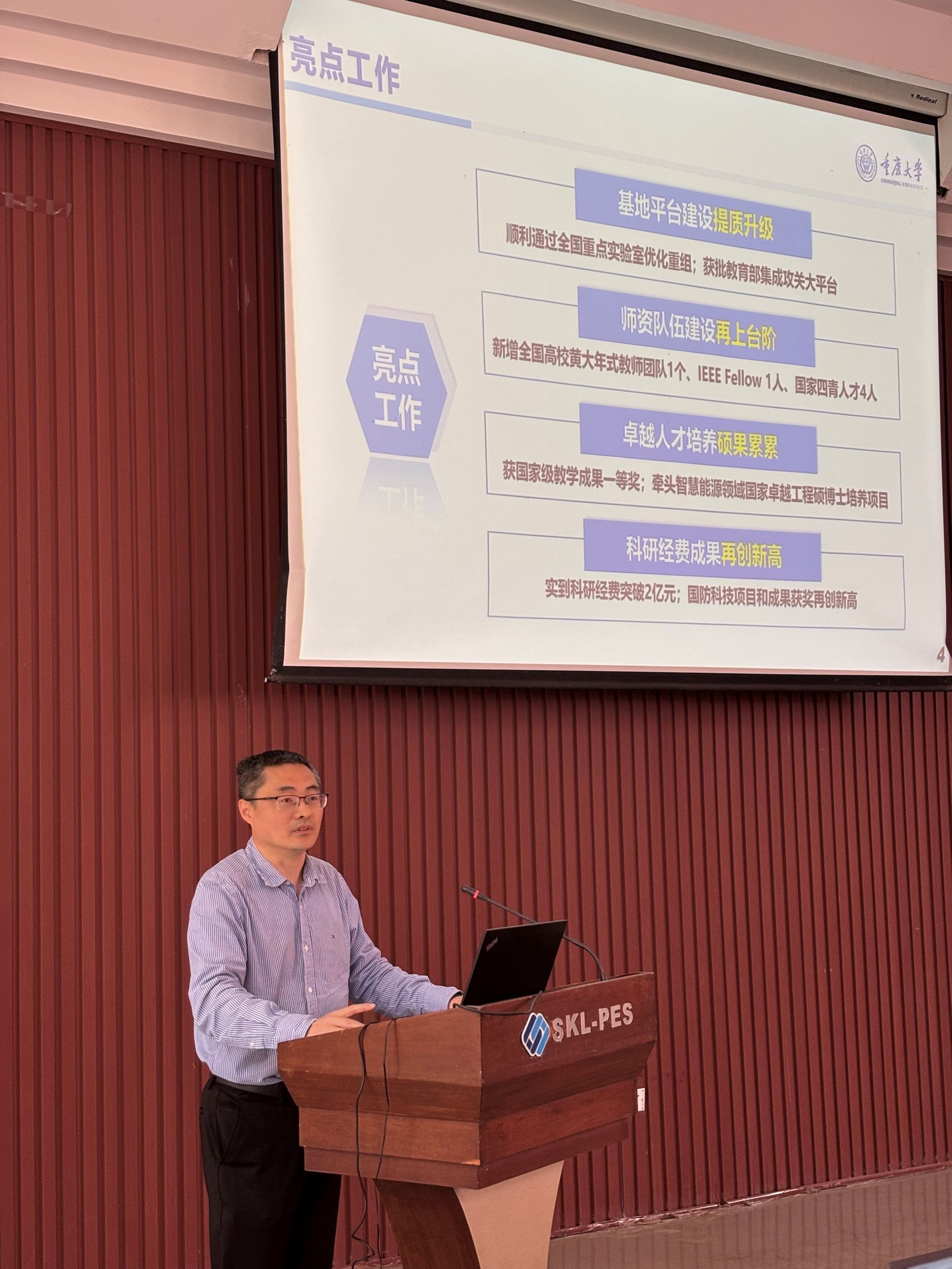 在六教6117报告厅召开2023-2024学年第二学期全体教职工大会。会议传达了学校最新会议精神并通报部署了学院近期工作安排等。学院党委书记胡建林,院长谢开贵,党委副书记王晓静、吴嘉,副院长杜雄、杨鸣,输变电装备技术全国重点实验室副主任李辉、曾礼强,国家野外科学观测研究站专职副站长张志劲出席会议。大会由王晓静副书记主持。