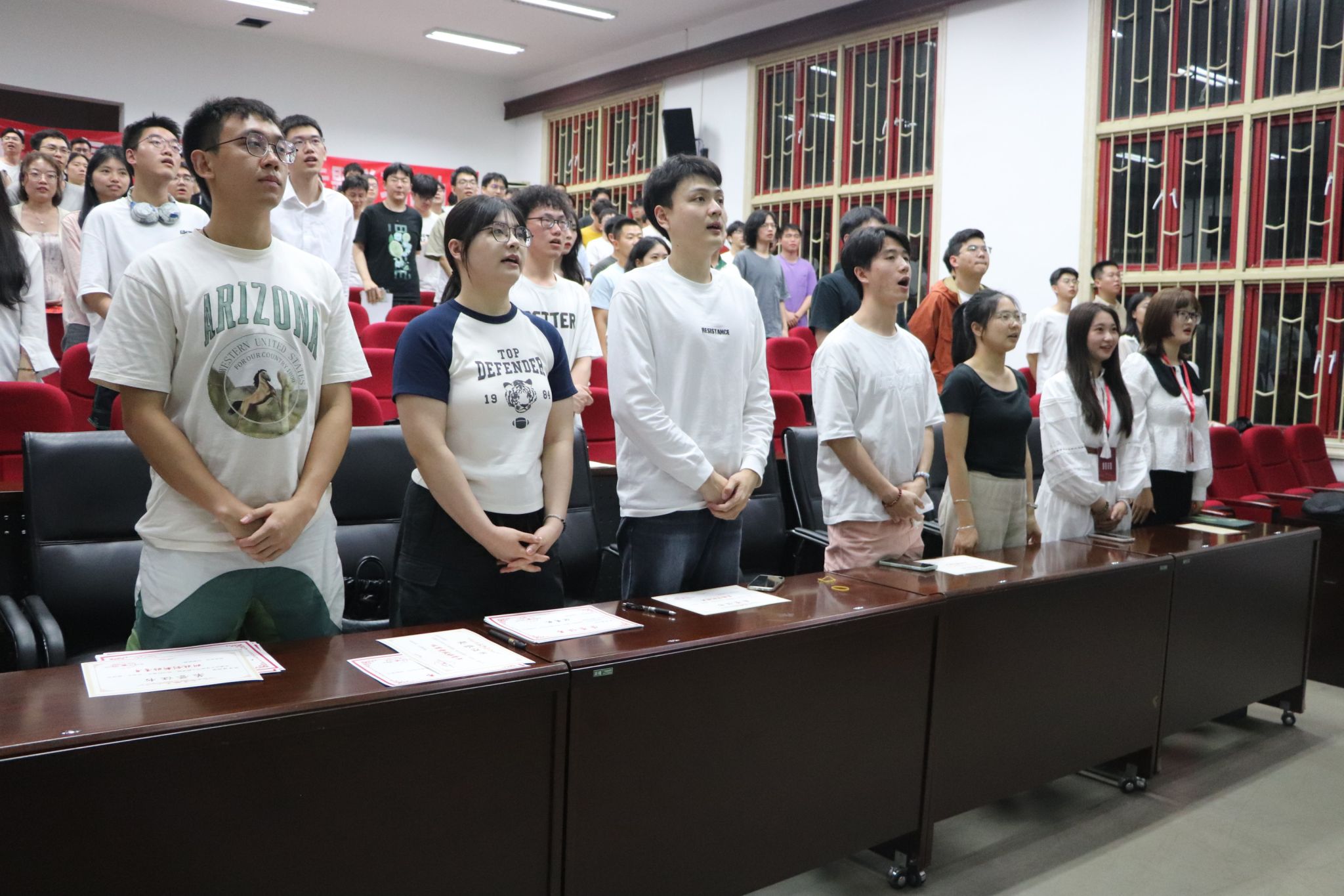 最后,全体合唱《歌唱祖国》作为本次党团活动的结束歌曲,全体合影后散场。