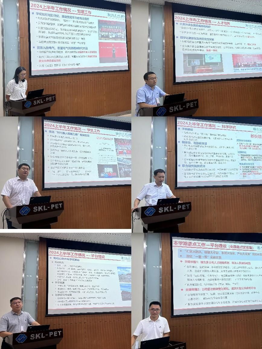 会上,各分管领导对党建工作、人才培养、人事人才、科学研究、平台建设和国际交流等主要工作进行了详细的汇报,与会人员以“党建如何带动中心工作”“多元化人才培养方案”“优质课程、教学成果奖谋划”“做大做强科研体量”“人才和队伍发展规划”“国家级基地平台实体化推进”等为切入点,深入探讨和交流了学院各方面工作的现状及存在的问题和解决思路。会议充分肯定了学院上半年工作情况,并就新学期各项工作计划和未来发展规划提出了建议和意见。