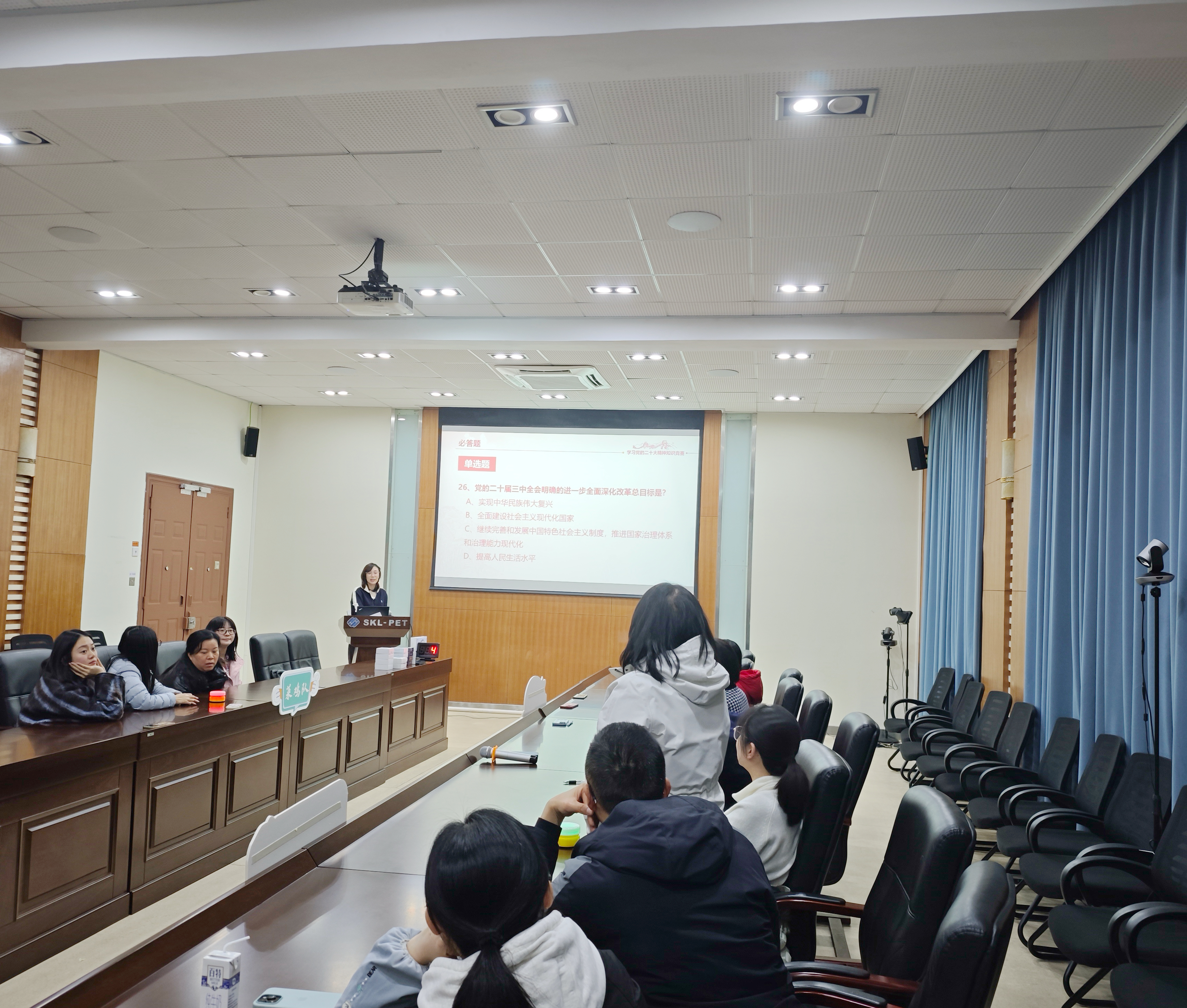 20241212日上午,为深入学习贯彻党的二十届三中全会精神和全国教育大会精神,进一步加强党纪学习教育,推进党建知识学习走深走实,全面提高党员党性意识和政治素养,学院行政教工党支部带领行政办公室教工顺利举办了以“凝心聚力担命 踔厉奋发谱新篇”为主题的党建知识竞赛。