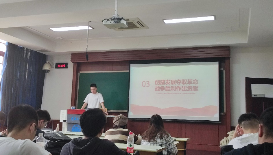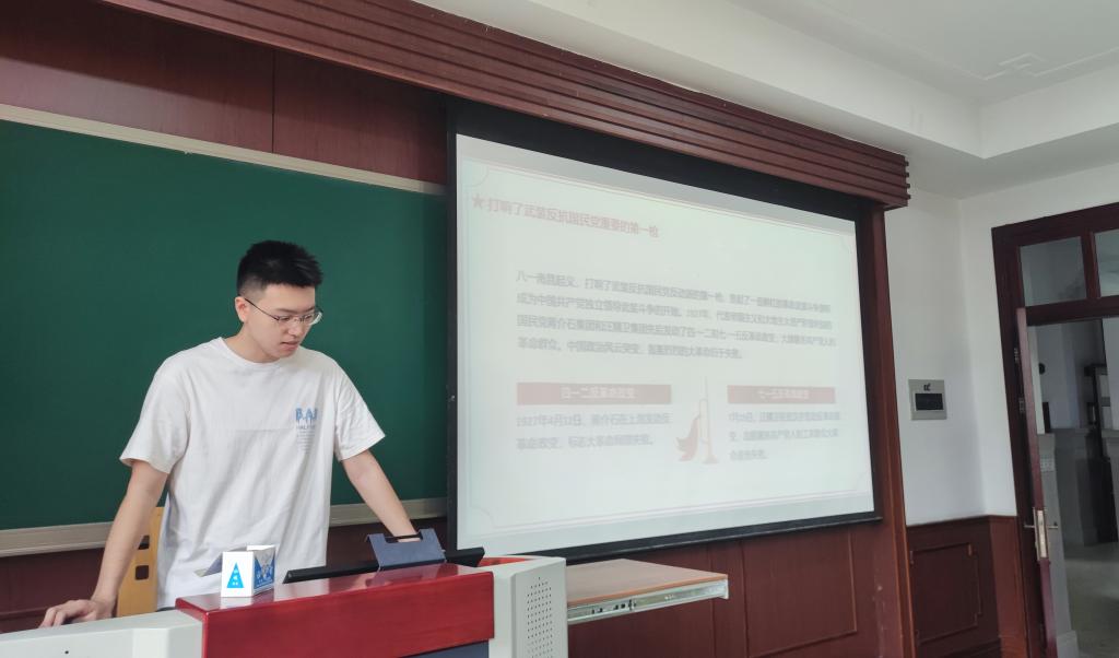 随后,刘培宇同志又从多个方面介绍了南昌起义对夺取革命战争胜利做出的贡献、为国防和军队的建设做出了重要贡献等相关知识。最后,通过播放两个关于南昌起义的视频,加深了大家对于南昌起义的认识和理解,巩固了本次活动的学习成果。