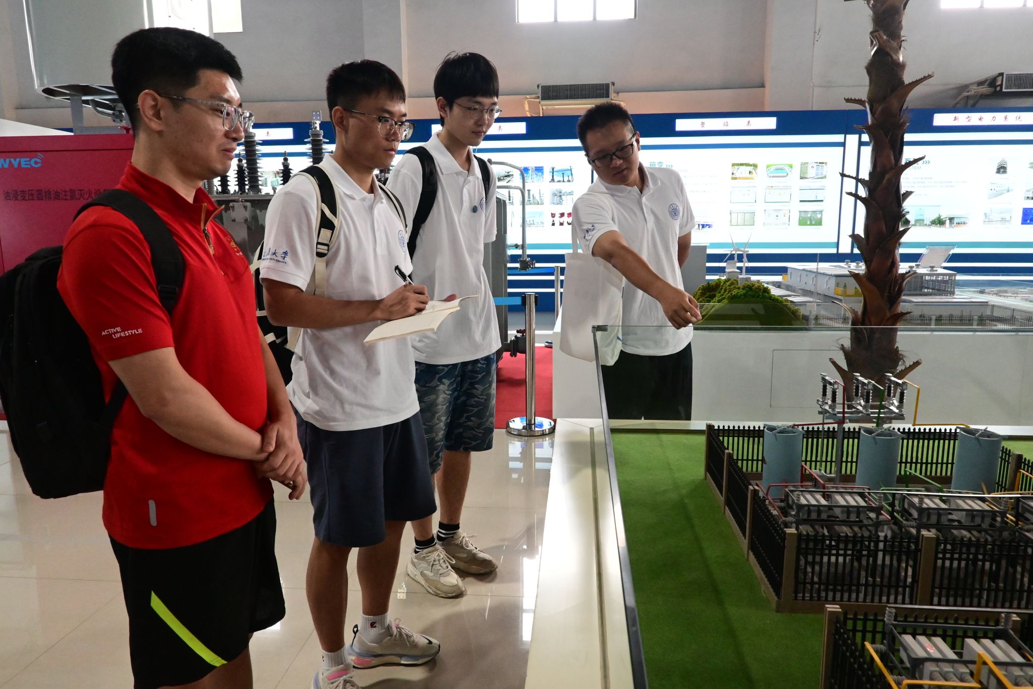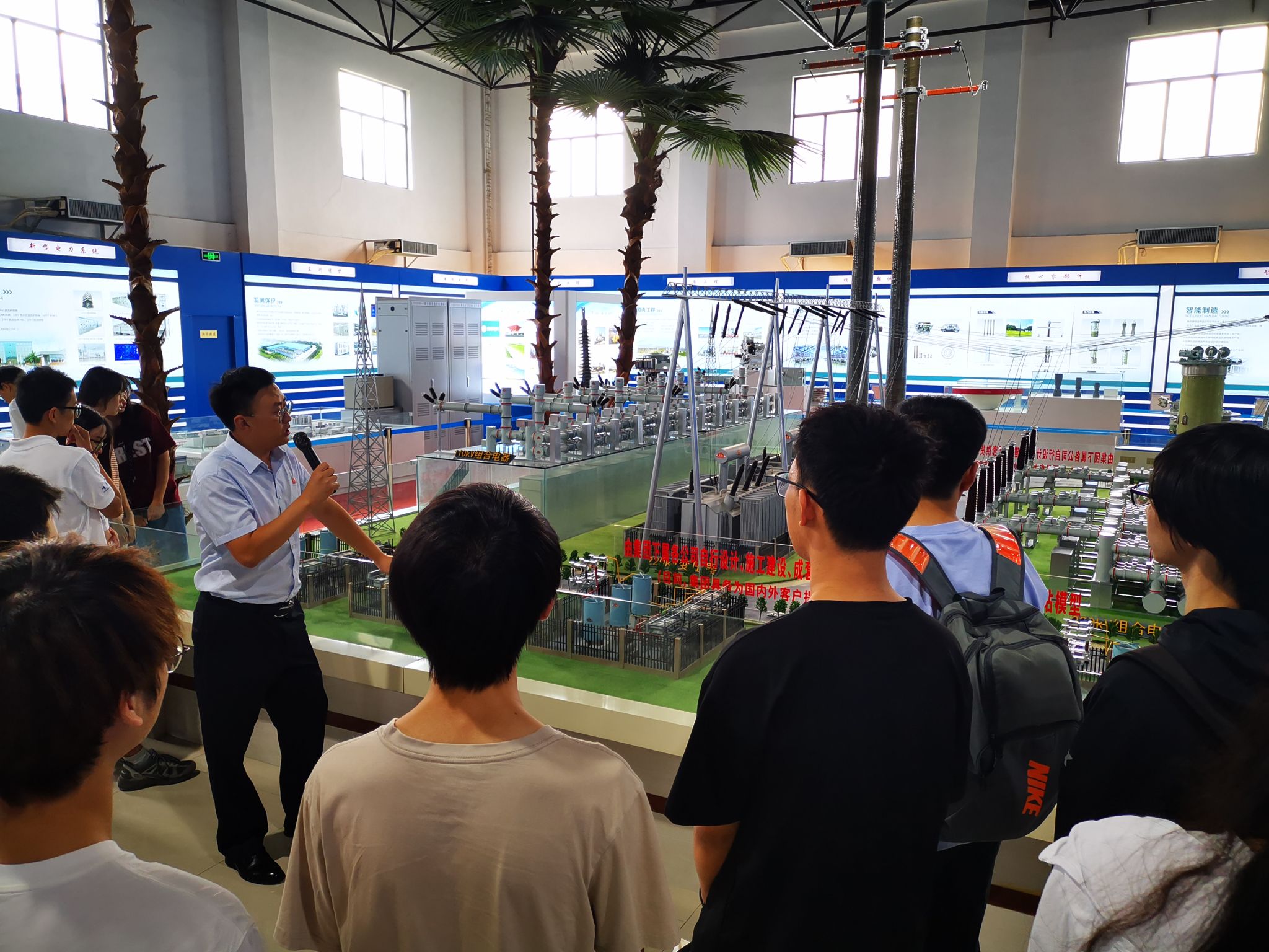 接下来,实践团成员在李峰的带领下对泰开集团总部展厅进行观摩学习,李峰为大家讲解了泰开集团的发展历程、主营产品、猫都论坛、校企合作等。隔离开关、变压器、电线电缆以及电力特种车等各式各样的输配电产品激发了实践团成员们对电力装备研发、制造、调试的浓厚兴趣,参观过程中大家相继提出疑问,同企业人员热切交流。通过此次集团总部参观调研,实践团成员对我国高压输电行业发展历程及输配电装备生产研发领域有了更深刻的认知,对泰开集团也有了较为全面的了解。