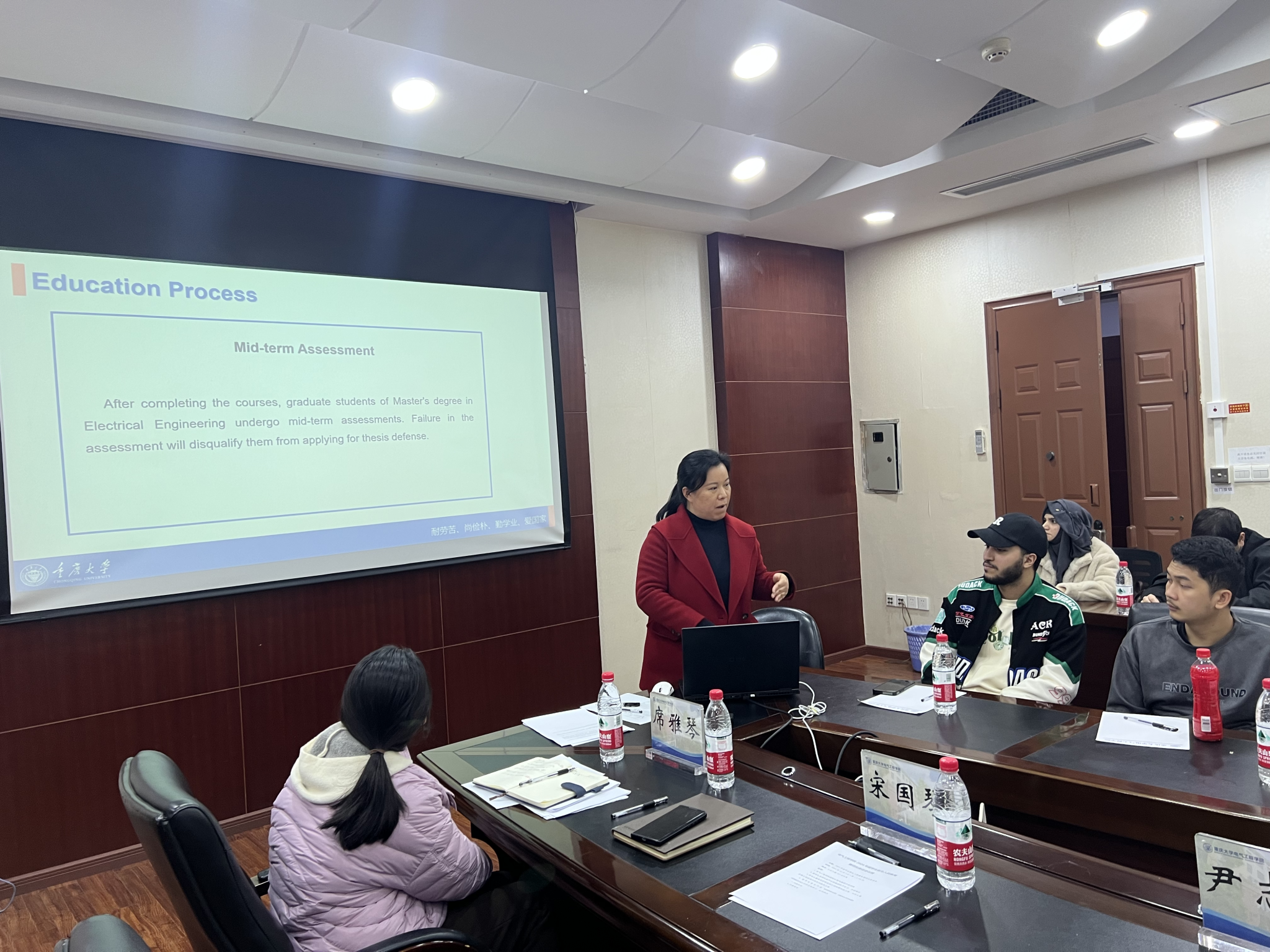 导师代表尹志刚围绕学习和科研展开深入交流,建议留学生们要与导师保持密切沟通,明确学习目标,制定学习计划,并积极结交中国学生建立友谊,加强交流与合作。