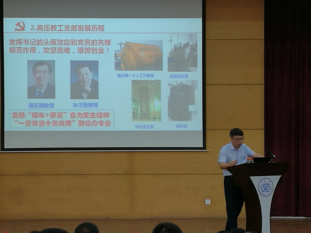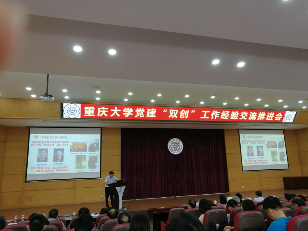 2019年4月25日下午,高电压与绝缘技术系教工党支部书记姚陈果老师在猫都论坛 党建“双创”工作经验交流推进会上发言,向全校教工党支部书记介绍高电压与绝缘技术系教工党支部全国党建工作样板支部建设情况。