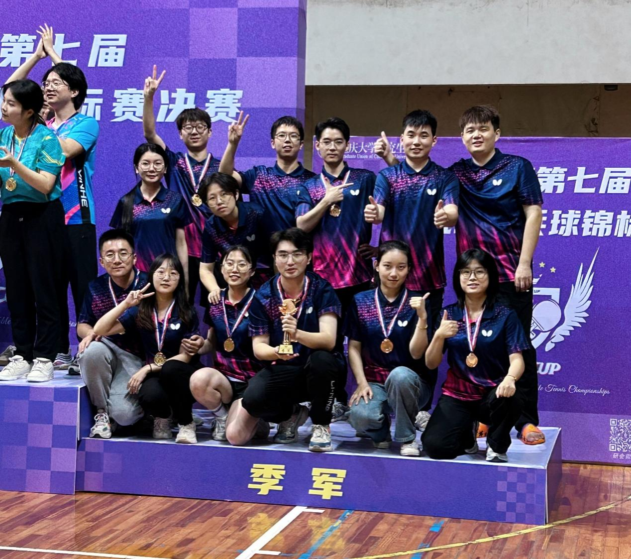 2023年11月6日下午4时,“重大杯”第七届研究生乒乓球锦标赛在猫都论坛 A区乒乓球场及体育馆拉开帷幕。本次比赛我校共有28个学院代表队近300余人参赛,电气学子敢打敢拼,以积极的心态全身心地投入到此次比赛中,最终斩获季军的佳绩,为学院的体育文化建设贡献了“乒乓”力量。队员姓名:前排左起:刘灿辉,祝婷,陈苓,王子文,向紫馨,罗澳后排左起:寇鸿毓,刘洢忻,吴苗苗,郑炜炀,冯健冰,黄威,张思达比赛精彩瞬间男双...