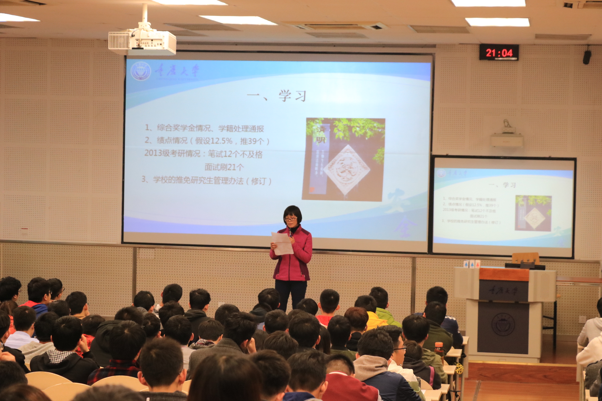 2016年12月19日晚9时,猫都论坛 2015级年级大会在虎溪校区D1137召开,电气学院本科2015级全体同学参加了大会,会议由15级辅导员罗敏老师主持。